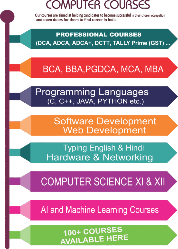 It offers various computer courses, diploma courses, and certifications in areas such as programming, multimedia and animation, graphics, hardware and networking, teacher training, and financial courses. ..