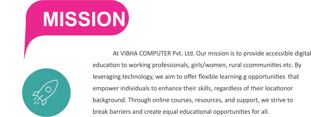 VIBHA COMPUTER SCIENCE INSTITUTE Pvt. Ltd. is a renowned educational technology company empowering education since 2009, we are a leading educational institution and provide Computer education through our Authorized Training Centres and also provide quality education and career guidance to aspiring students.