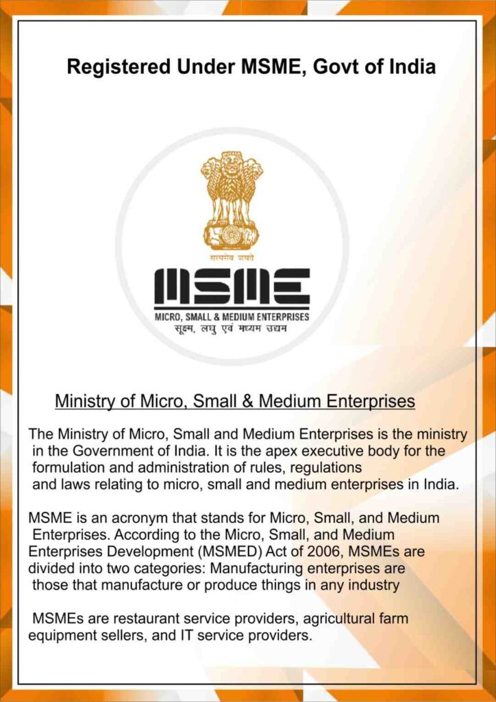 Govt. Approvals: 1. Ministry of Corporate Affairs, Govt. of India 2. MSME Registered, Govt. of India 3. ISO 9001:2015certified 4. Trademarks Registered 5. InternationalAccreditations 6. Digital India Registered